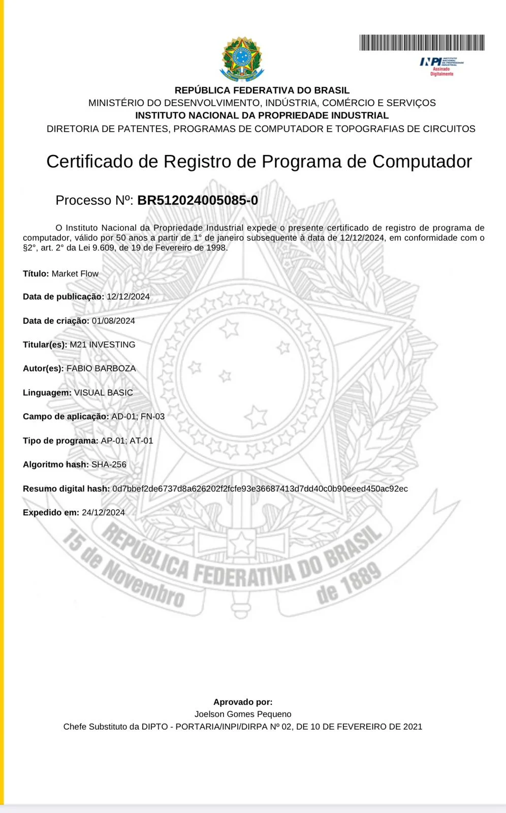 Essa patente representa muito mais que um registro: é o selo de inovação e propriedade intelectual de um sistema que redefine a leitura institucional no Brasil.